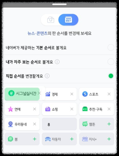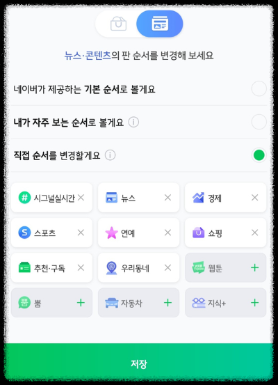 뉴스 콘텐츠의 카테고리 순서를 내 마음대로 변경할 수 있습니다.