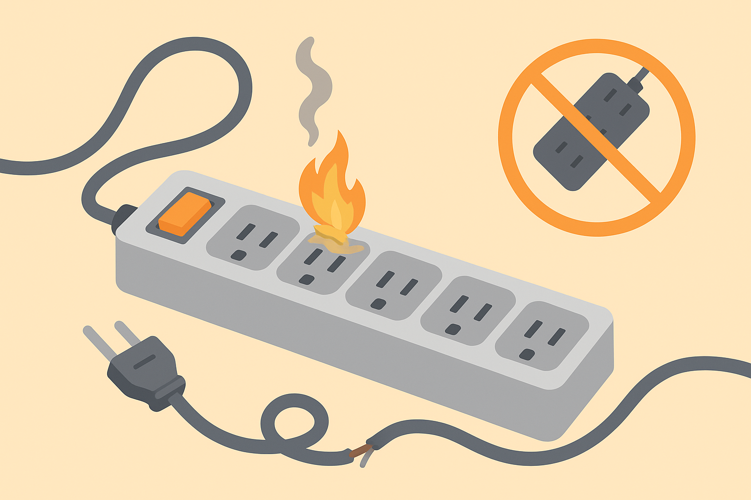 - 여러 개의 멀티탭 연결 금지(문어발 연결): 전기 과부하 위험