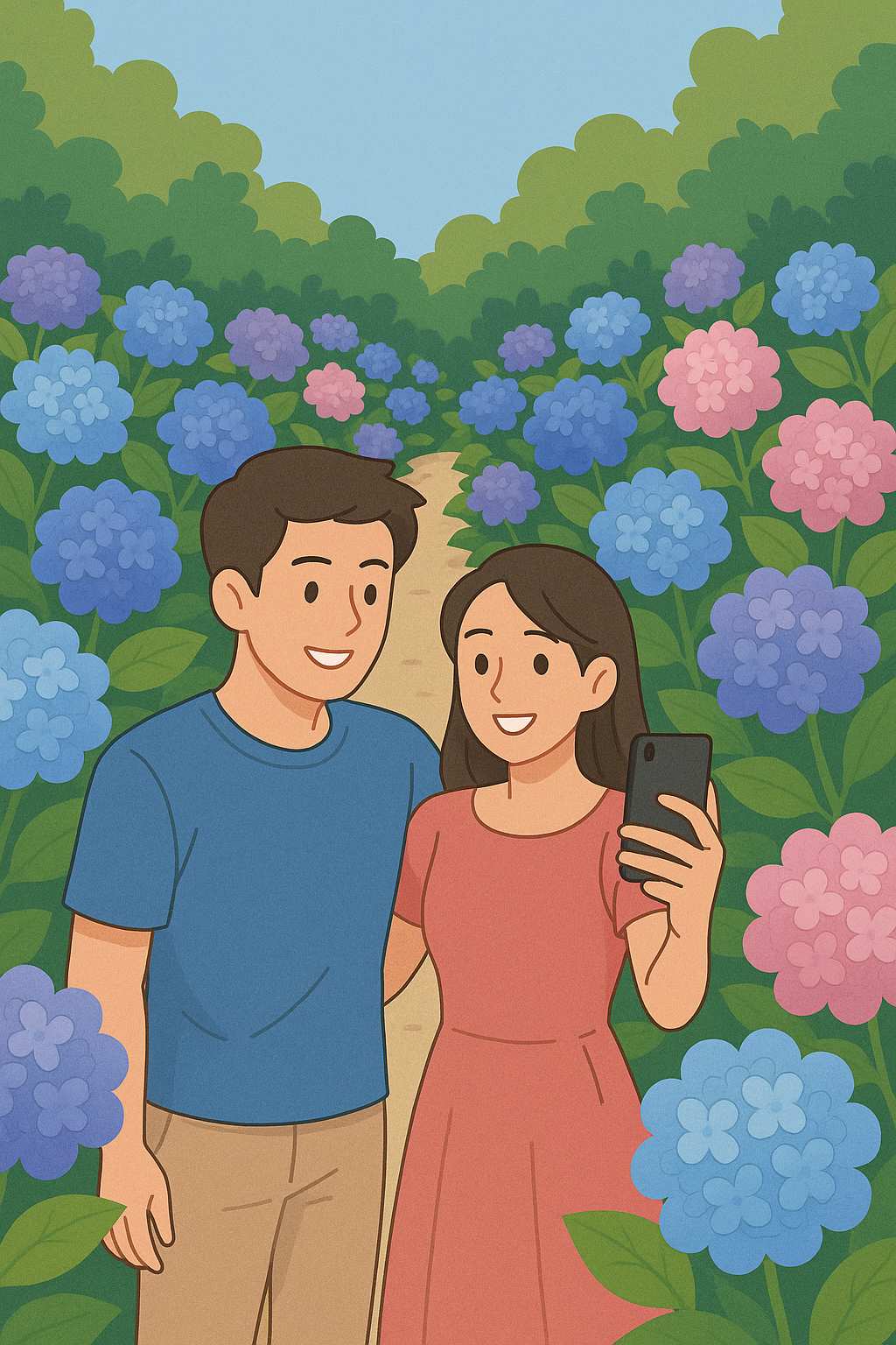 📌 참고로 수국은 기온과 습도에 영향을 많이 받아요. 햇볕보다는 반그늘이나 흐린 날씨를 좋아하는 꽃이랍니다. 그래서 흐린 날 공원에 나가도 수국은 여전히 아름답게 피어 있어요.