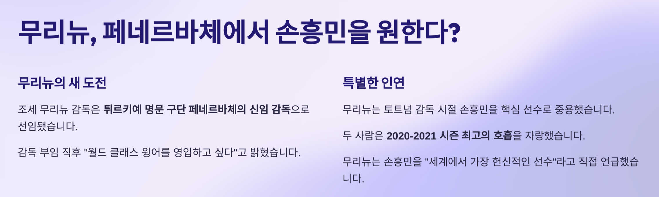 팬들의 시선은 다시 한 번 무리뉴와 손흥민, 그 특별했던 시절의 재현 여부에 쏠리고 있습니다.