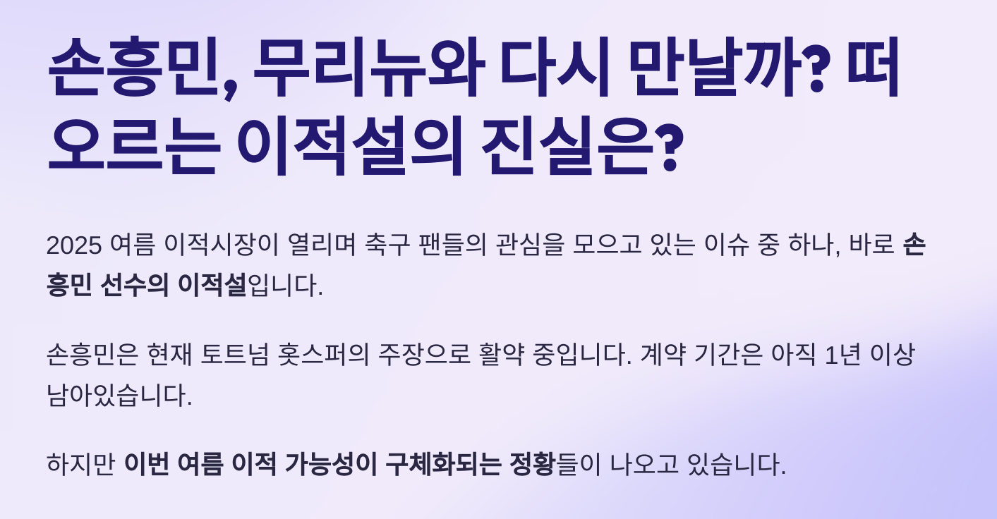 2025년 여름 이적시장을 앞두고 손흥민 이적설이 본격적으로 수면 위로 올라왔습니다.