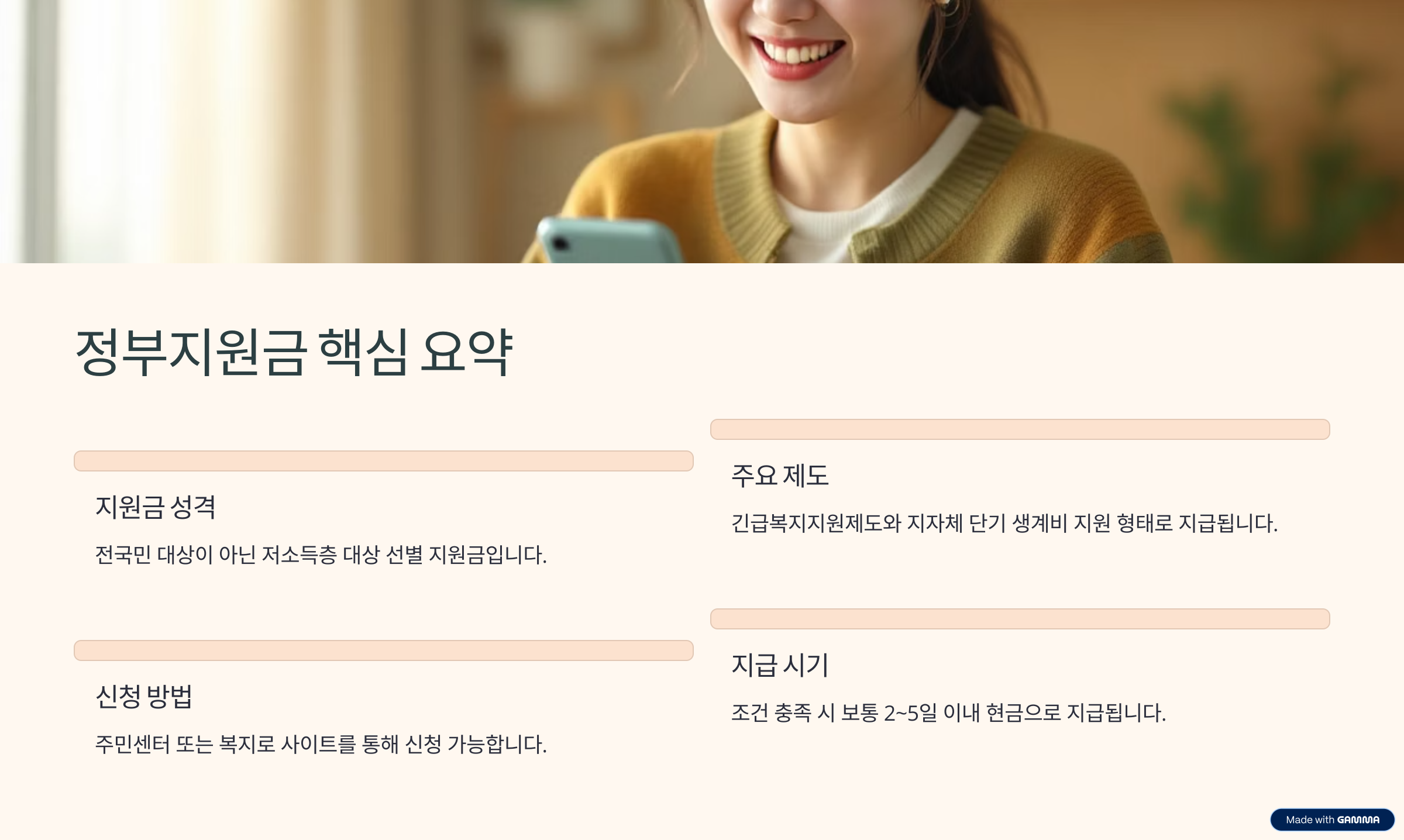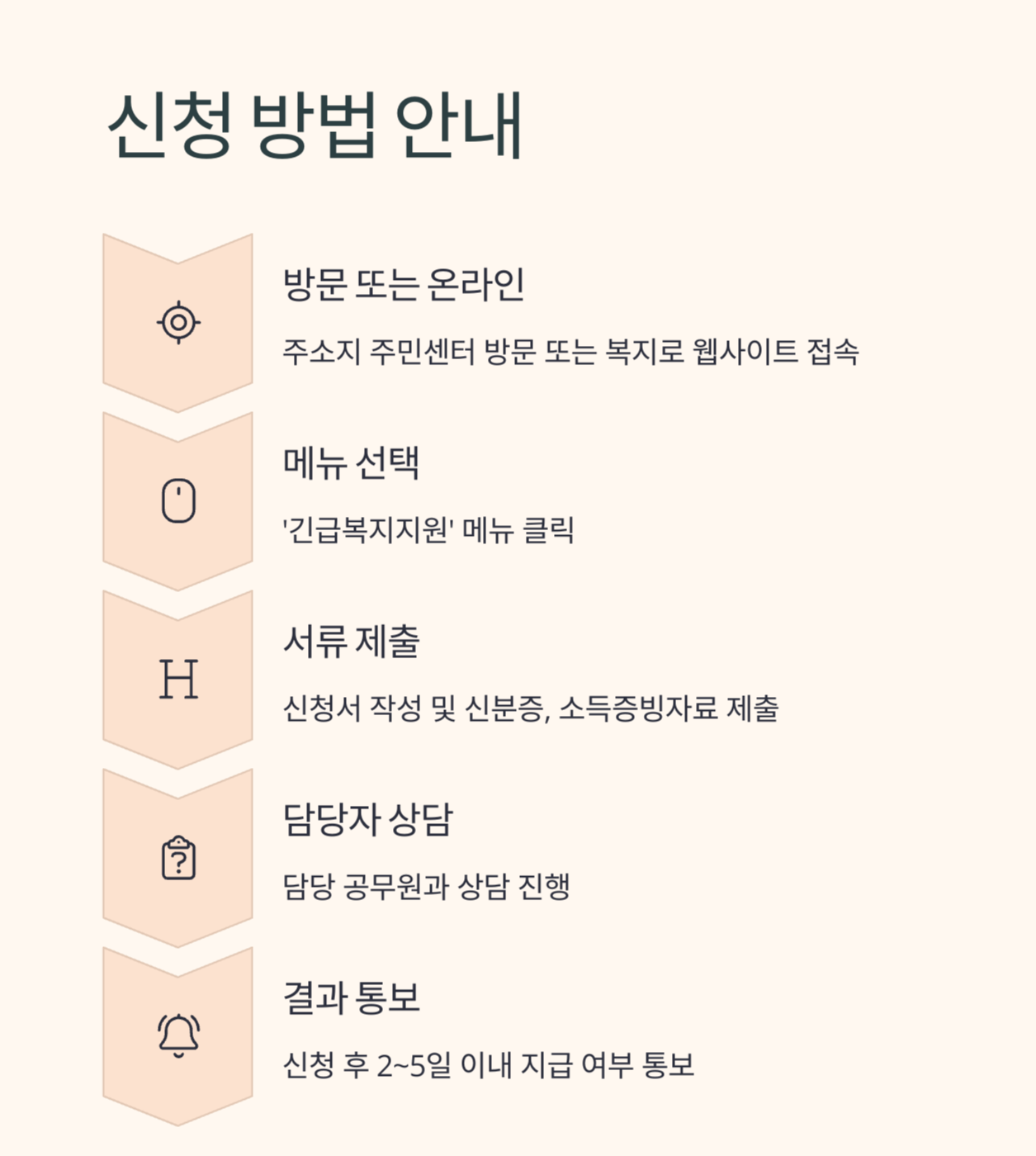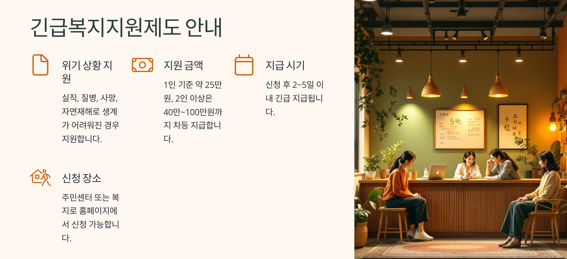 - 지급시기: 신청 후 2~5일 이내 긴급 지급