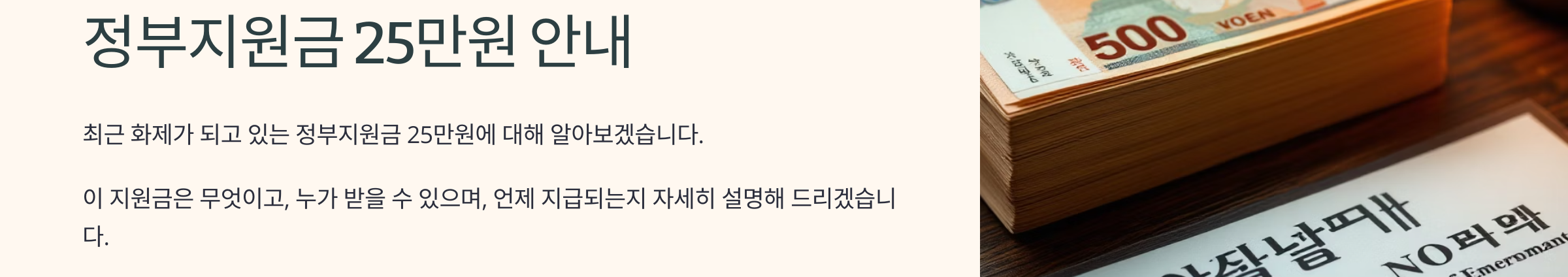 특히 갑작스럽게 생계 곤란을 겪게 된 저소득층에게 1회 또는 한시적으로 지급되는 현금 지원금이 25만 원 선에서 책정되는 경우가 많아 ‘정부지원금 25만 원’이라는 키워드로 알려진 것입니다.
