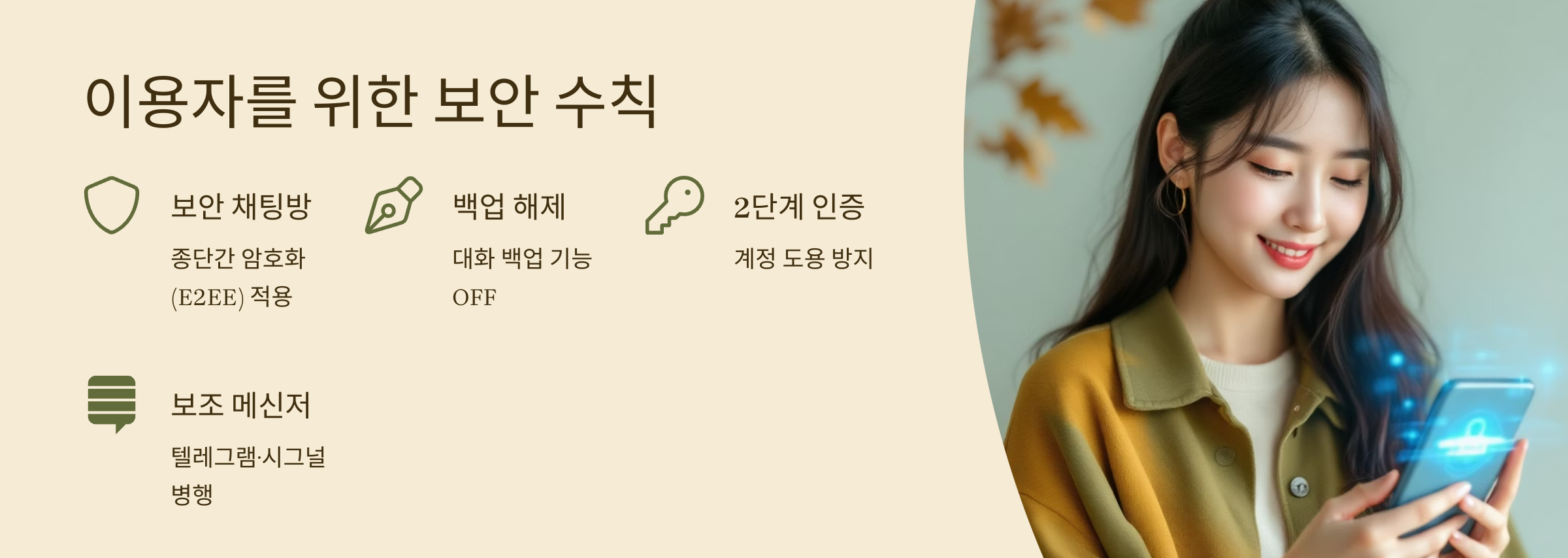 그럼에도 불안하다면, 보안 채팅을 활용하거나, 백업 비활성화, 보조 메신저 사용 등으로