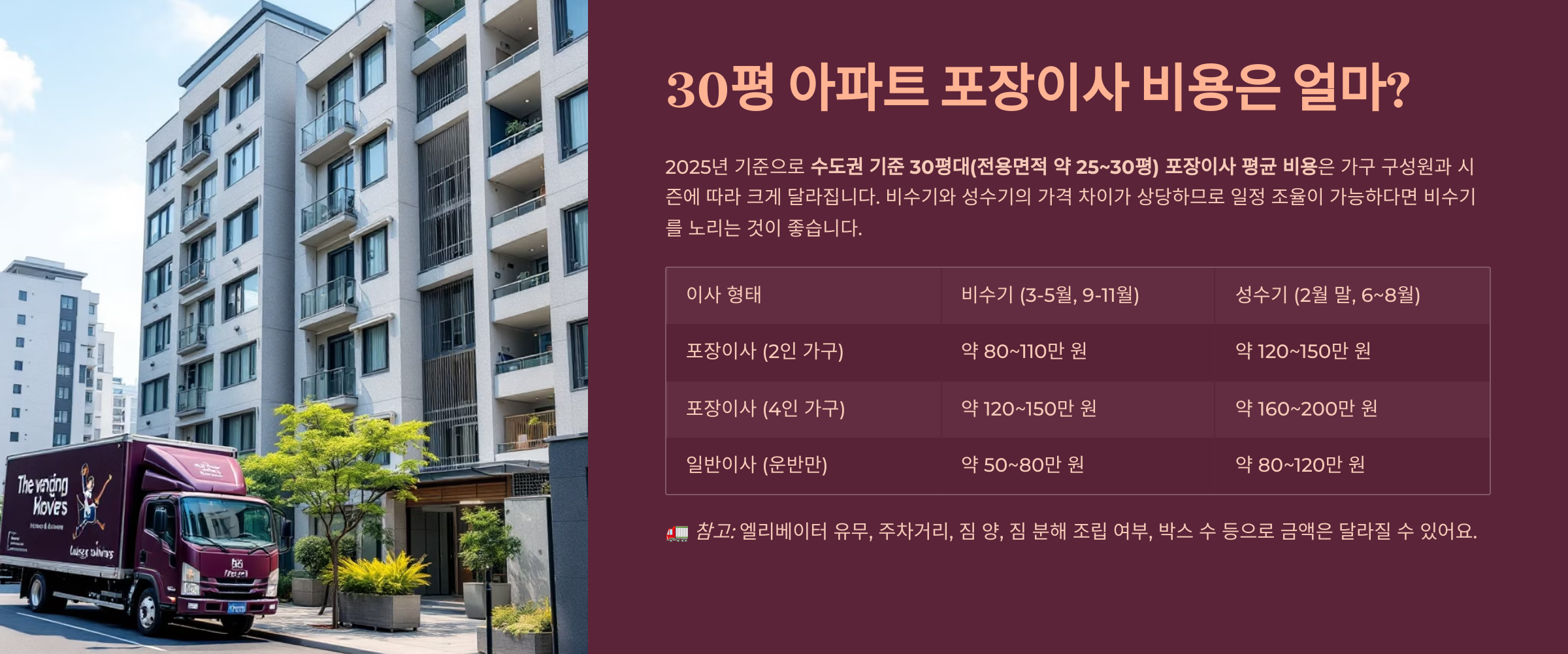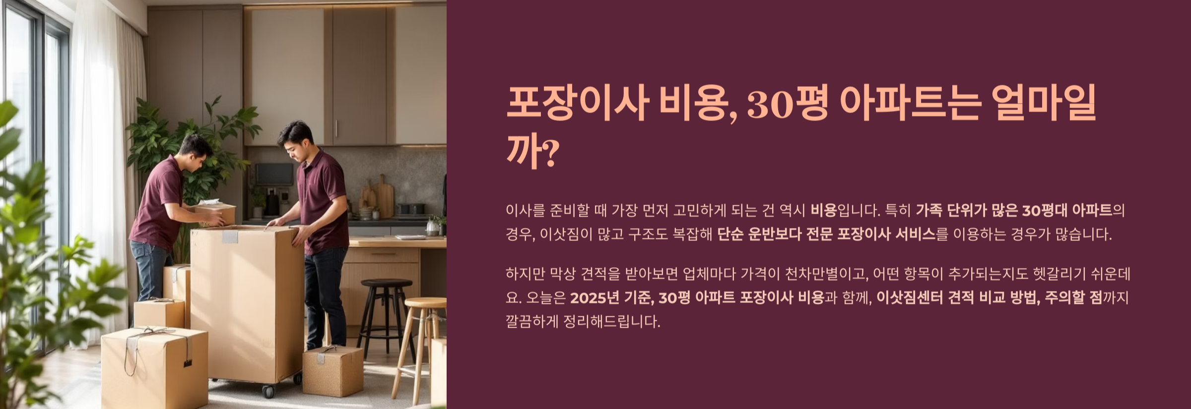 오늘은 2025년 기준, 30평 아파트 포장이사 비용과 함께, 이삿짐센터 견적 비교 방법, 주의할 점까지 깔끔하게 정리해드립니다.