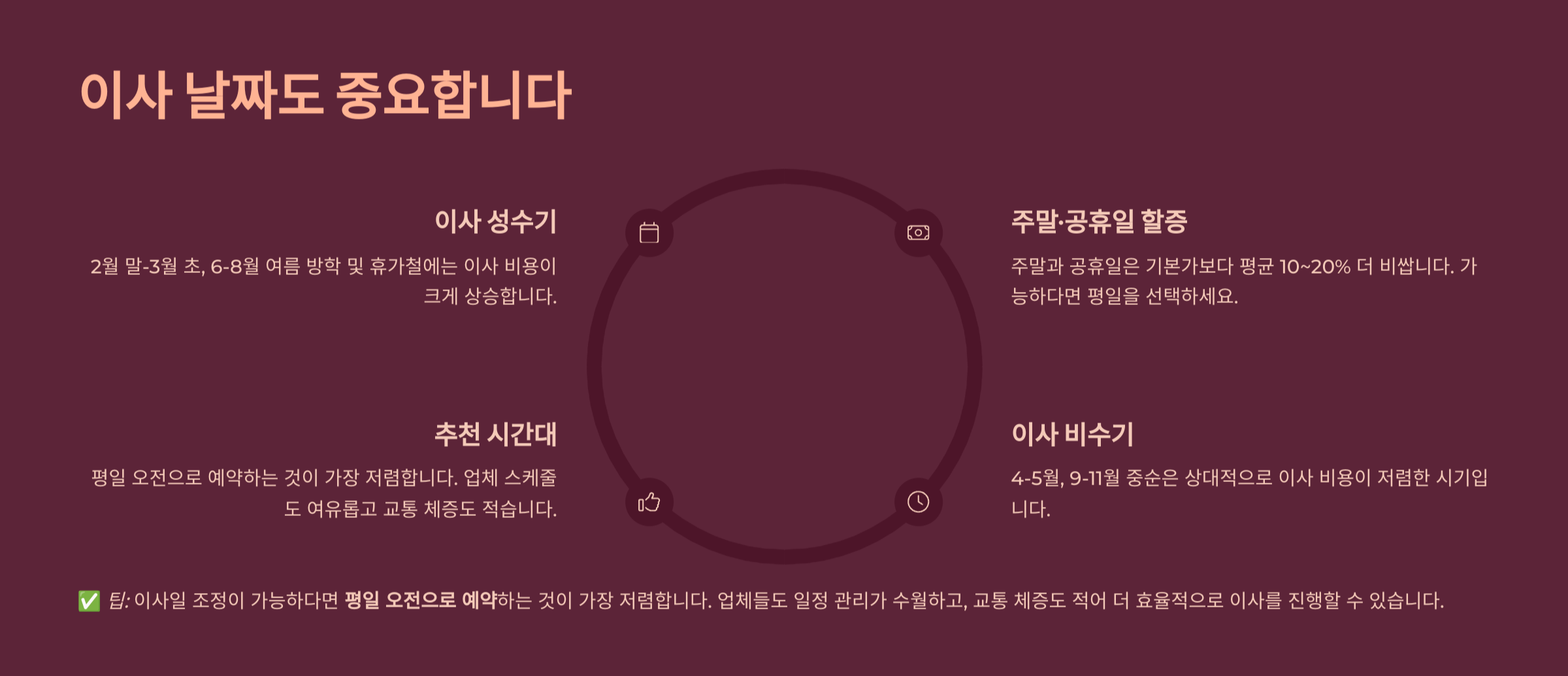 ✅ 팁: 이사일 조정이 가능하다면 평일 오전으로 예약하는 것이 가장 저렴합니다!